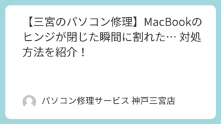 三ノ宮から徒歩2分のパソコン修理店「パソコン修理サービス」です!MacBookは洗練されたデザインと高い精度で知られています。しかしその美しさの裏には、「繊細さ」という弱点も潜んでいます。特に最近増えているのが、「閉じたときに画面が割れた」...