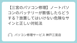 三ノ宮から徒歩2分のパソコン修理店「パソコン修理サービス」です!ノートパソコンを長年使っていると、ある日ふと「底面が浮いている」「タッチパッドが押しにくい」「キーボードが盛り上がっている」などの違和感を感じることがあります。それは単なる経年...