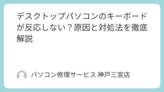三ノ宮から徒歩2分のパソコン修理店「パソコン修理サービス」です!普段何気なく使っているデスクトップパソコン。そのキーボードが突然反応しなくなると、仕事も作業も止まってしまいますよね。キーを押しても文字が入力されない、反応が遅い、一部だけ効か...