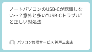 三ノ宮から徒歩2分のパソコン修理店「パソコン修理サービス」です!ノートパソコンのUSB-C端子は、充電・映像出力・データ転送までこなす万能ポートとして急速に普及しています。しかしその一方で、「USB-Cデバイスを挿しても反応しない」「充電さ...