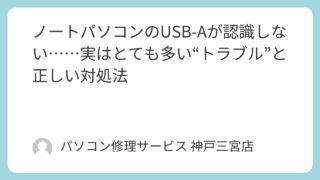 三ノ宮から徒歩2分のパソコン修理店「パソコン修理サービス」です!マウス、キーボード、USBメモリ、外付けHDD、プリンター。長年パソコンの中心的な役割を担ってきたのがUSB-Aポートです。しかしある日突然、これらの機器が認識しなくなり、「あ...
