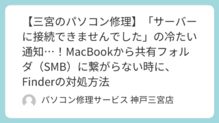 PCトラブル 【三宮のパソコン修理】「サーバーに接続できませんでした」の冷たい通知…!MacBookから共有フォルダ(SMB)に繋がらない時に、Finderの対処方法