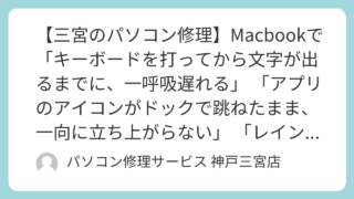 知恵袋 【三宮のパソコン修理】Macbookで「キーボードを打ってから文字が出るまでに、一呼吸遅れる」 「アプリのアイコンがドックで跳ねたまま、一向に立ち上がらない」 「レインボーカーソルが回る頻度が、以前に比べて明らかに増えた」
