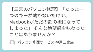 PCトラブル 【三宮のパソコン修理】「たった一つのキーが効かないだけで、Macbookがただの鉄の板になってしまった」 そんな絶望感を味わったことはありませんか?