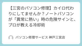 PCトラブル 【三宮のパソコン修理】カイロ代わりにしてませんか?ノートパソコンが「異常に熱い」時の危険サインと、プロが教える冷却術