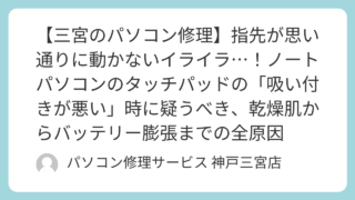 PCトラブル 【三宮のパソコン修理】指先が思い通りに動かないイライラ…!ノートパソコンのタッチパッドの「吸い付きが悪い」時に疑うべき、乾燥肌からバッテリー膨張までの全原因