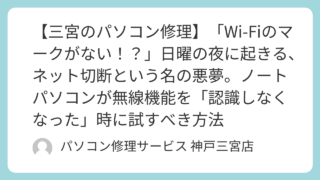 PCトラブル 【三宮のパソコン修理】「Wi-Fiのマークがない!?」日曜の夜に起きる、ネット切断という名の悪夢。ノートパソコンが無線機能を「認識しなくなった」時に試すべき方法
