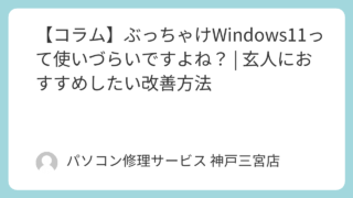 三ノ宮から徒歩2分のパソコン修理店、パソコン修理サービスです。Windows 10のサポートが終了してから数ヶ月。 多くの企業様や個人ユーザー様が、半ば強制的に、あるいは仕方なくWindows 11への移行を完了された頃かと思います。そして...