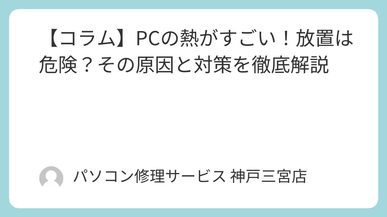 三宮エリアで「PCが熱すぎて不安」「ノートPCが熱暴走する」といったお悩みをお持ちなら、