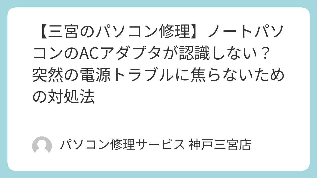 今回は、ノートパソコンのACアダプタが認識しない時の原因と対処法、