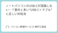 特に近年のノートパソコンはUSB-C充電の普及や急速充電対応など電源まわりの仕組みが複雑化しており、ちょっとした接触不良でも認識できなくなることがあります。