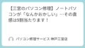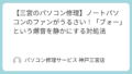 そんな時は、ぜひ私たち「パソコン修理サービス 神戸三宮店」にお任せください。 プロならではの技術で、あなたのパソコンに「静寂」と「健康」を取り戻します。