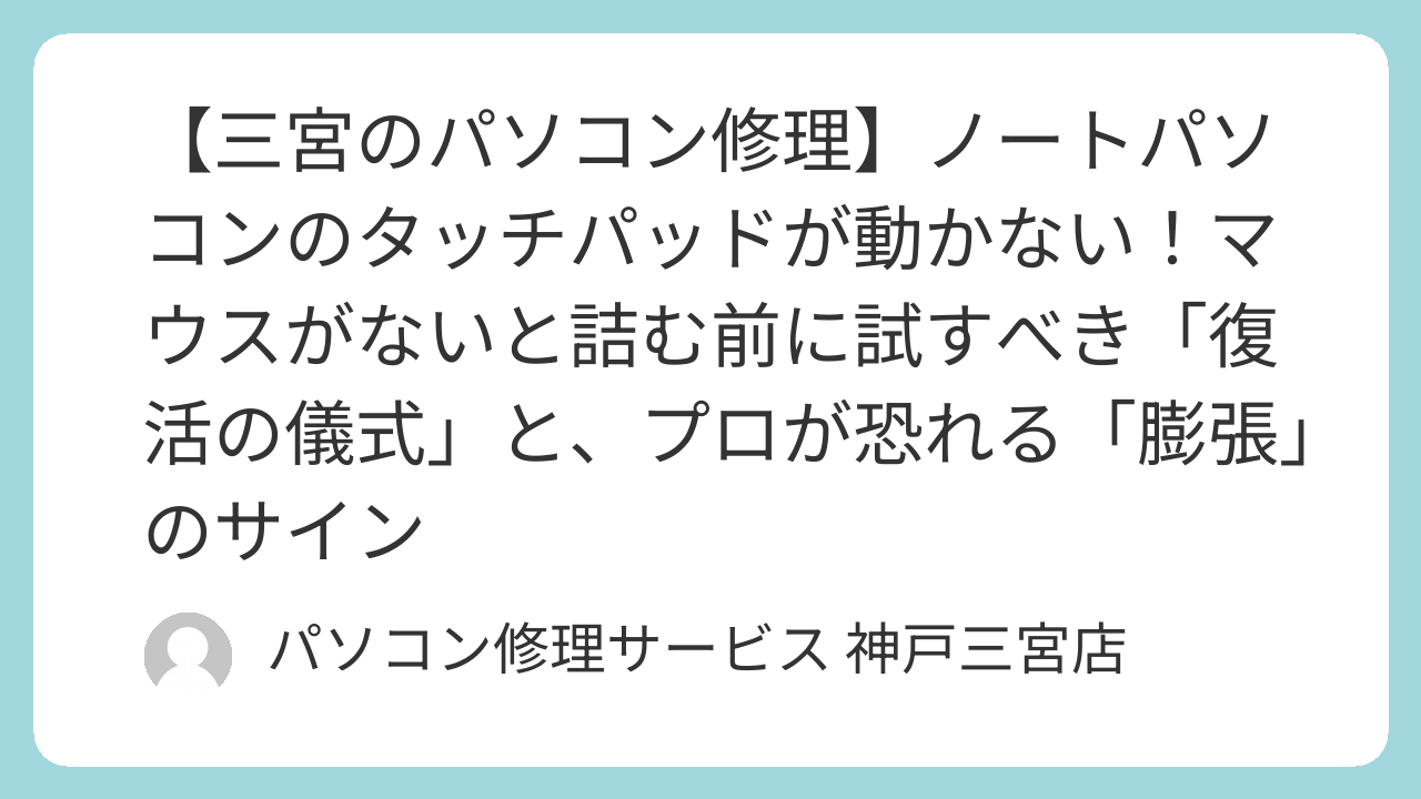 タッチパッドは、あなたがパソコンと対話するための大切な「指先」です。 それが動かないということは、単なる不便さ以上に、パソコン内部で何らかの異常(特にバッテリー膨張)が起きているサインかもしれません。