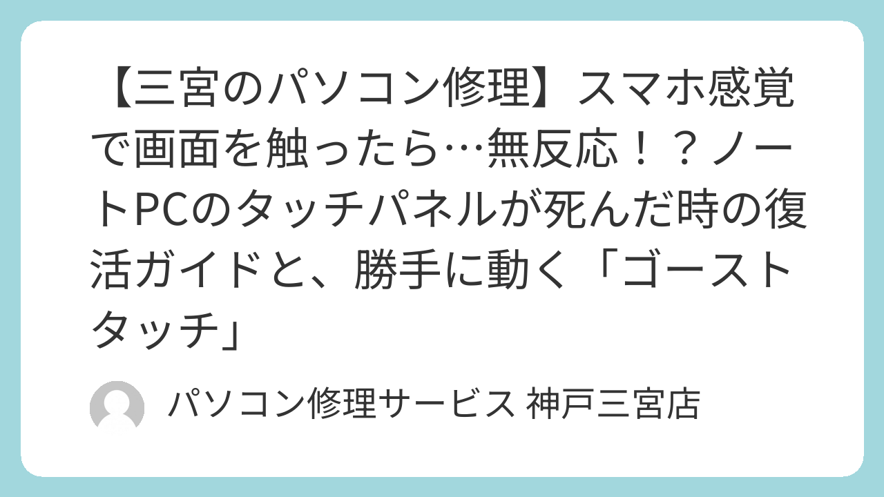 冬の神戸は乾燥しています。セーターを着てパソコンに触れると「バチッ」となることがありますよね。 パソコン内部に静電気が溜まると、タッチパネルのセンサーが誤作動を起こしたり、保護機能が働いて一時的にタッチ機能を遮断したりすることがあります。