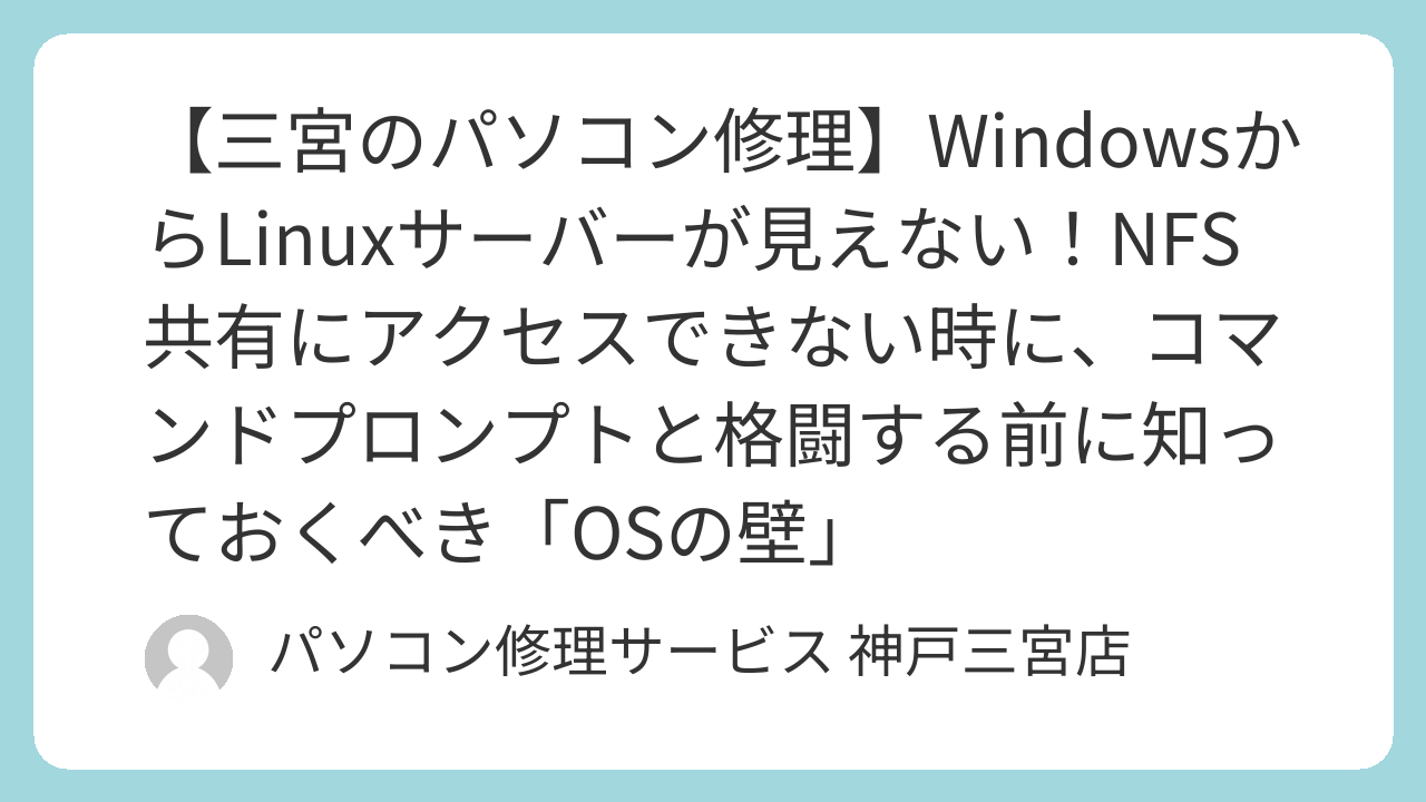 「Linuxサーバーの共有フォルダ(NFS)が、Windowsからマウントできない」 「コマンドプロンプトで『ネットワークエラー 53』が出る」 「フォルダは見えているのに、書き込み権限がないと弾かれる」