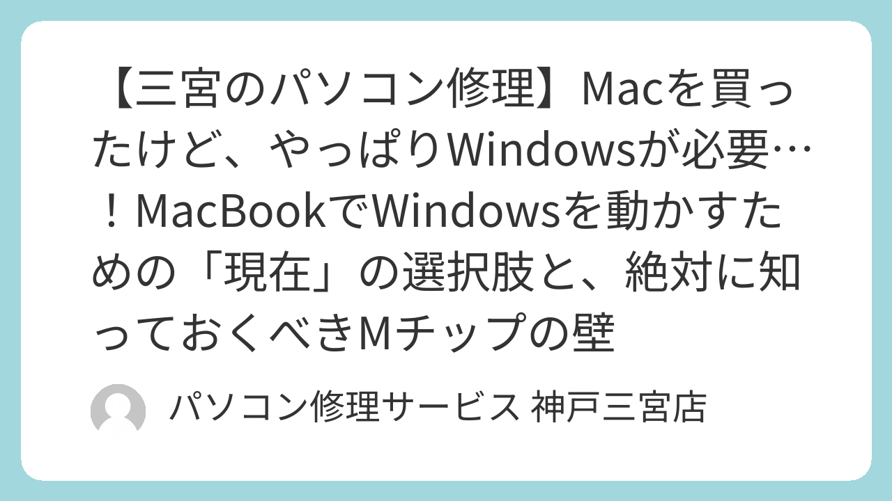 当店には日々様々なパソコントラブルのご相談が寄せられますが、その中でも「故障」ではないけれど、非常に多く、そして切実なご相談があります。 それは、「MacBookを買ったんだけど、やっぱりWindowsが必要になってしまった」というお悩みです。
