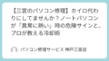ご自身での解決が難しい場合は、ぜひ三宮駅から徒歩2分の「パソコン修理サービス 神戸三宮店」にご相談ください。