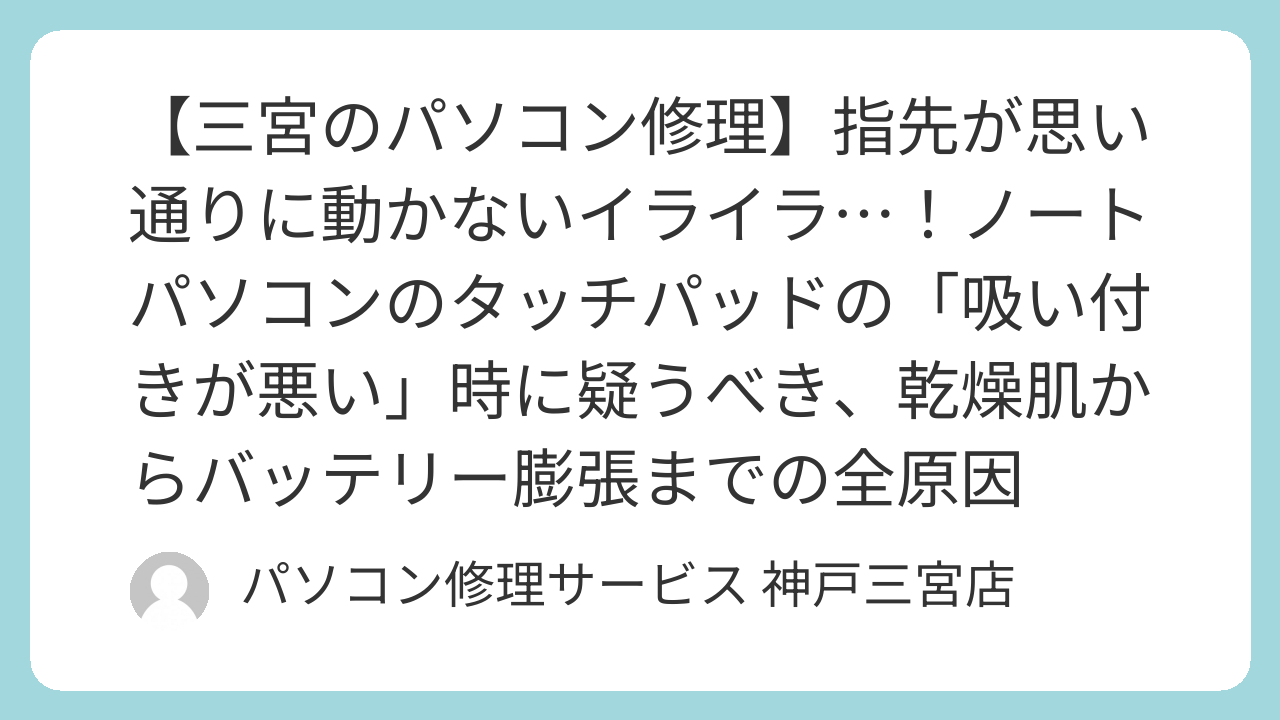 「なんか使いにくいな」 その感覚は、気のせいではありません。 乾燥や汚れといった些細なことから、バッテリー膨張という重大な事故の予兆まで、タッチパッドは様々なサインを指先に送っています。