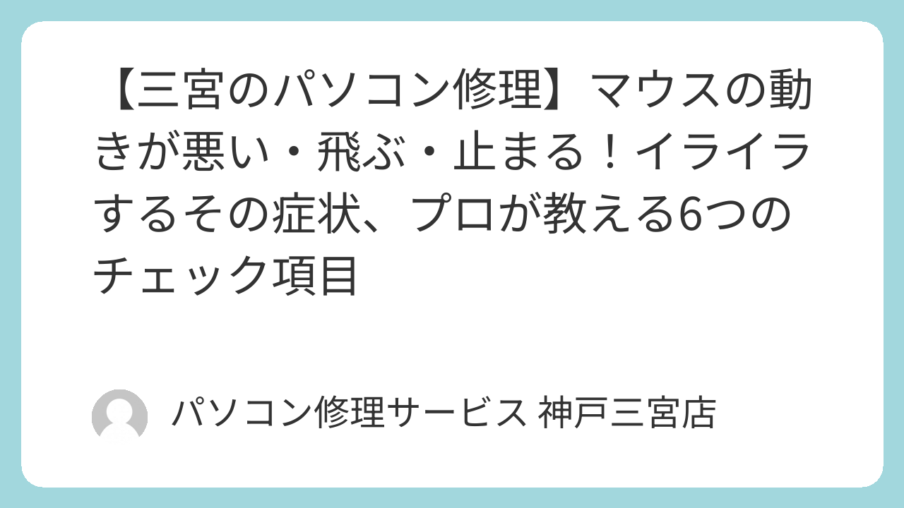 「たかがマウスの動きで修理屋に行くなんて」と思われるかもしれませんが、マウスはパソコン操作の要です。