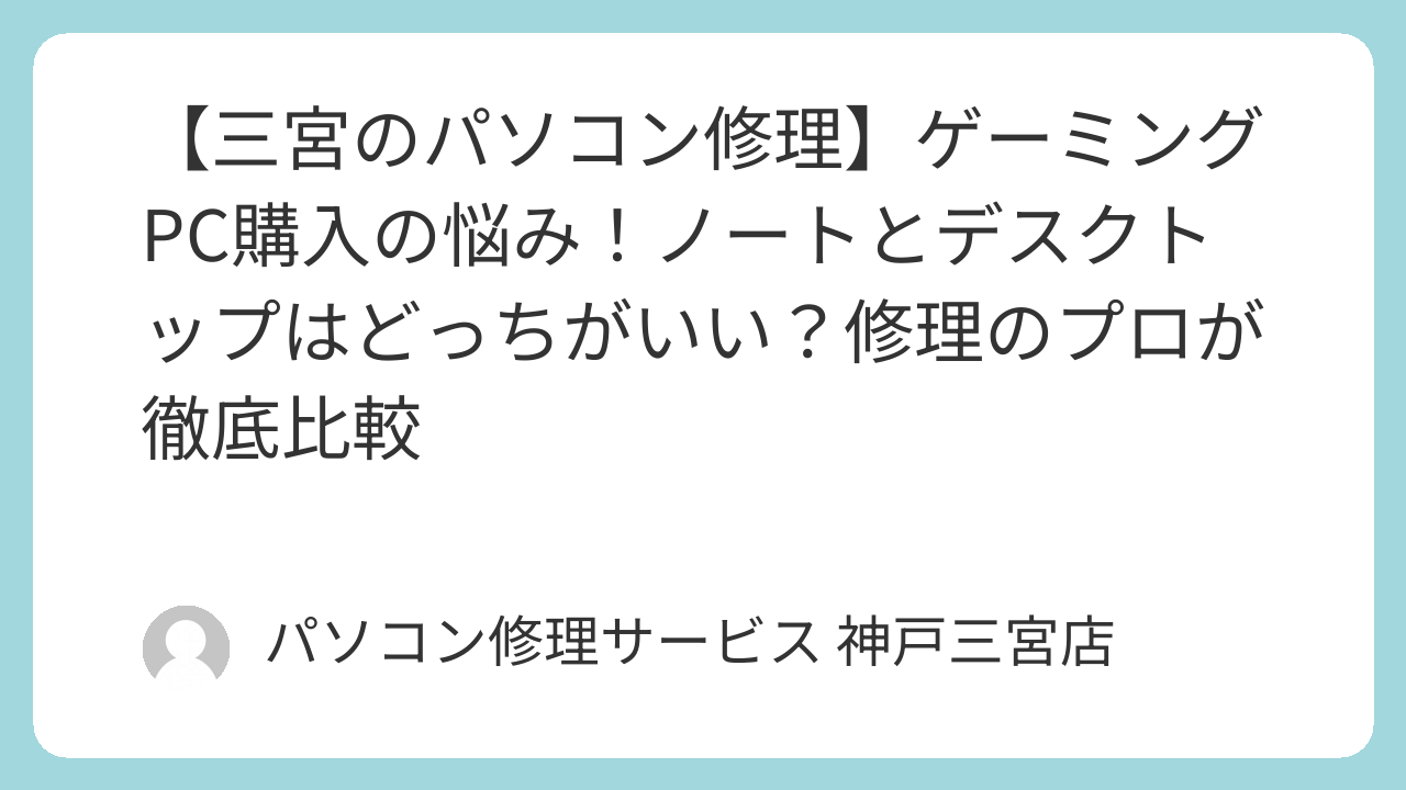 もし、新しく買ったパソコンの初期設定やゲームのインストールでお悩みの際や、長年使っているパソコンの内部クリーニング(ホコリ除去や冷却グリスの塗り直し)をご希望の際は、ぜひ三宮駅から徒歩2分の「パソコン修理サービス 神戸三宮店」へお気軽にご相談ください。