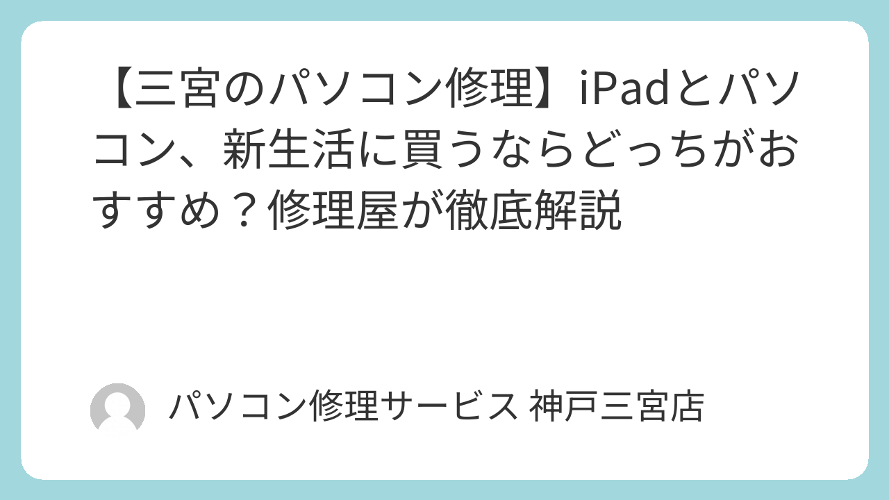 もし、新しく買ったパソコンの初期設定に不安がある場合や、古い端末からのデータ移行でお困りの際は、ぜひお気軽に三宮駅から徒歩2分の「パソコン修理サービス 神戸三宮店」へご相談ください。