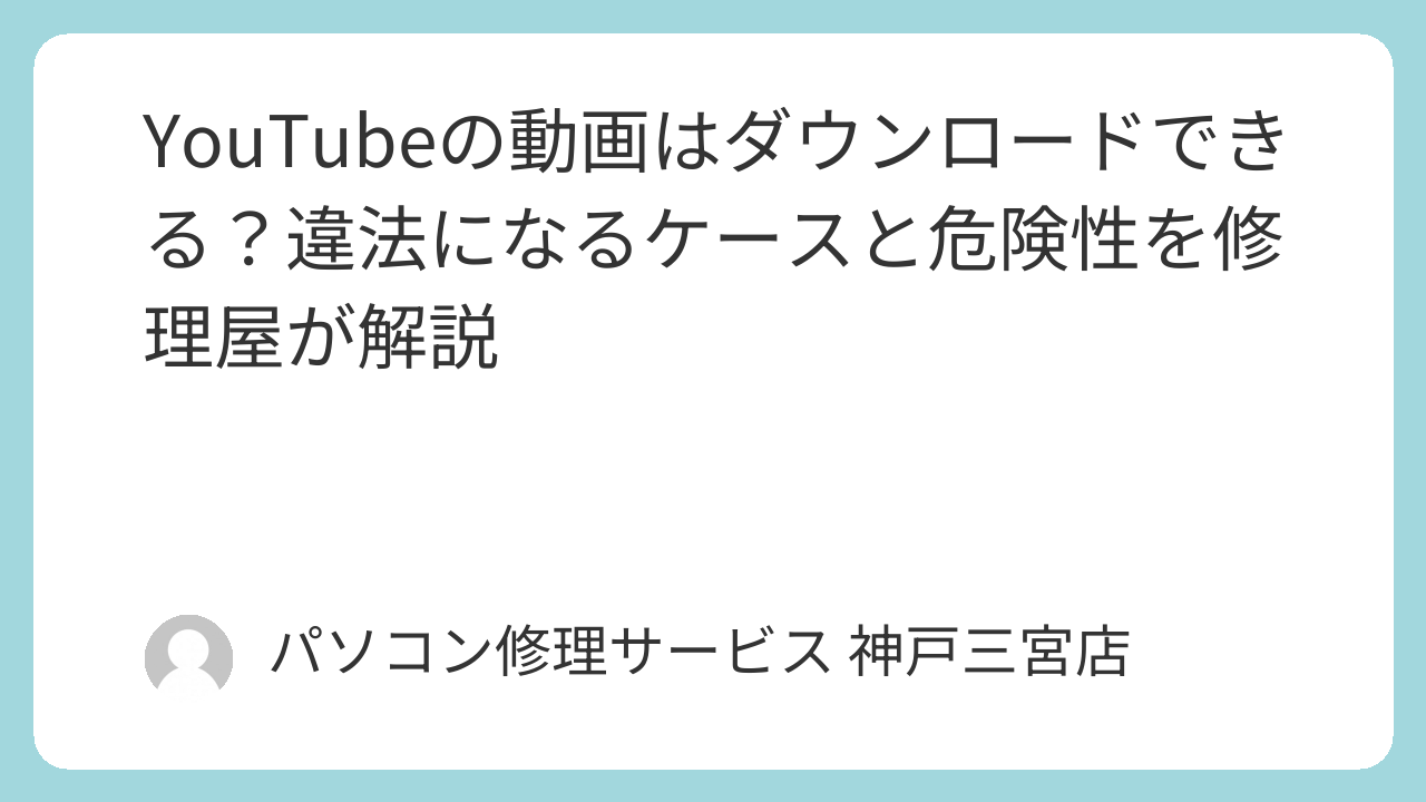 今回は、YouTube動画のダウンロードに関するルールと、法律に違反してしまうケース、そして修理屋の視点から見た非公式ツールの恐ろしい罠について解説いたします。