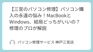 三宮駅から徒歩2分の「パソコン修理サービス 神戸三宮店」です。店頭でパソコンが寿命を迎えたと診断されたお客様や、修理のタイミングで買い替えを検討されているお客様から、次のようなご相談をよくいただきます。 「新しく買うなら、MacBookとW...