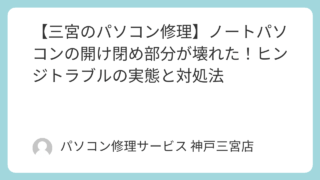 PCトラブル 【三宮のパソコン修理】ノートパソコンが「閉まらない」!? 物理的トラブルの原因と修理の現実 三ノ宮から徒歩2分のパソコン修理店「パソコン修理サービス」です!ノートパソコンといえば、「開いて使って、閉じて持ち運ぶ」という便利な構造が魅力。しかしある日、、、「なんか…蓋(ふた)が閉まらない」「ヒンジ(蝶番)が固くなってギシギシ音がする... 2025.10.17 PCトラブル知恵袋