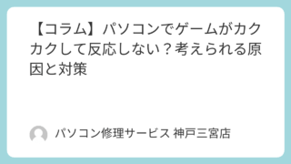 PCトラブル 【三宮のパソコン修理】パソコンでゲームがカクカクして反応しない?考えられる原因と対策 三ノ宮から徒歩2分のパソコン修理店「パソコン修理サービス」です!PCゲームをプレイしていて「画面がカクカクする」「反応が遅れる」といった症状に悩んだ経験はありませんか?せっかく高性能なゲーミングPCやノートパソコンを用意しても、快適に遊べな... 2025.10.04 PCトラブル知恵袋