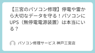 PCトラブル 【三宮のパソコン修理】停電や雷から大切なデータを守る!パソコンにUPS(無停電電源装置)は本当にいる? 三宮駅から徒歩2分の「パソコン修理サービス 神戸三宮店」です。落雷の多い季節や、予期せぬ停電が起きたとき、パソコンの電源が突然切れてヒヤッとした経験はありませんか。 当店にも「停電のあとからパソコンの電源が入らなくなった」「作業中のデータが... 2026.04.09 PCトラブル知恵袋